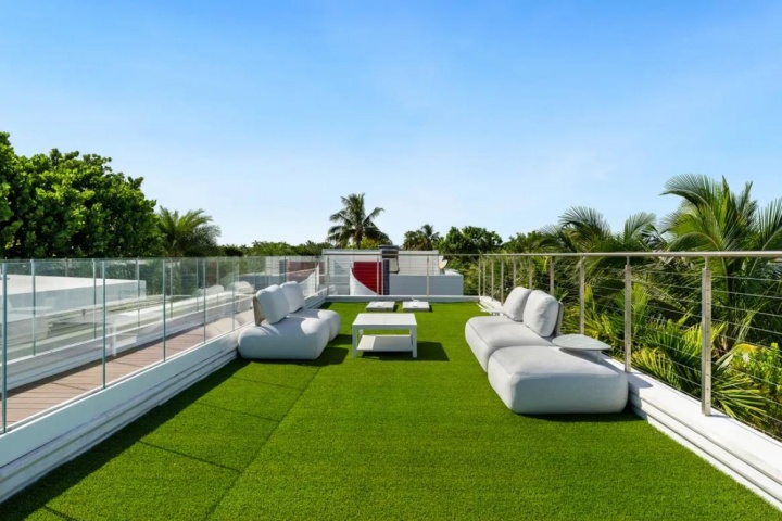 这座现代风格的豪宅坐落在近18,000平方英尺(约1672平方米) 的封闭式地块上,拥有90英尺(约27米) 直面迈阿密海滩Surprise Lake的水岸线。